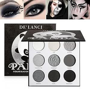 دي لانسي باليت ظلال عيون بلاك سموكي من باندا ، 9 الوان اسود فضي رمادي ابيض قوطية عالية الاصطباغ غير لامعة للبنات والنساء متلألئ مسحوق