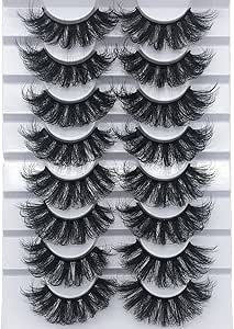 رموش صناعية منفوشة طويلة وسميكة ودرامية قابلة لاعادة الاستخدام، رموش مجعدة 8 دي مقاومة للماء من المنك الصناعي، 8 ازواج (ايه)