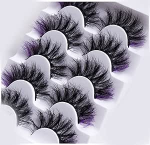 رموش ملونة، رموش صناعية 5 دي مع رموش من المنك الصناعي، رموش مزغبة وملونة بشريط درامي، رموش صناعية للازياء التنكرية والكريسماس، عبوة من 5 ازواج (ارجواني)