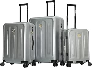 روبيرتو كافالي مجموعة حقائب سفر صلبة مع عجلات دوارة من 3 قطع, فضي