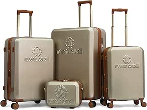 روبيرتو كافالي مجموعة شنط سفر من 4 قطع تي اس ايه L 28-M 24-S 20 – BC 12 انش ذهبي فاتح – GSV008/007/006/01E بولي كربونات PC