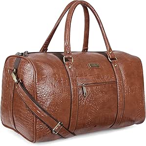 - ✅تصميم أنيق – يمكن استخدام هذه الحقيبة المصنوعة من الجلد المزخرف الأنيق والعملي في سفر الشركات وكذلك لأخذها إلى صالة الألعاب الرياضية. الجيب الكبير الواسع مناسب للاستخدام كحقيبة طيران محمولة بوزن 7 كغم أيضًا. حقيبة سفر محمولة للرجال والنساء.
