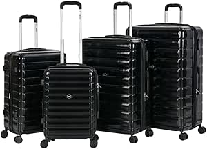 ستارلايف مجموعة شنط سفر بعجلات دوارة وجوانب صلبة من مادة ABS مع قفل ارقام TR39 من 4 قطع، لون اسود