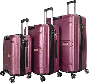 ستار جولد مجموعة شنط سفر بعجلات من 3 قطع من تي بي سي بعجلات دوارة 360 درجة مع قفل تي اس ايه، لون ارجواني SG-TPC45