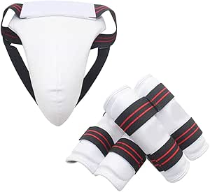 سروال ضيق واقٍ للذراعين للتدريب على الملاكمة يستخدم لسبارة الكاراتيه، للرجال فقط، مجموعة معدات واقية من التايكوندو (أبيض، صغير)