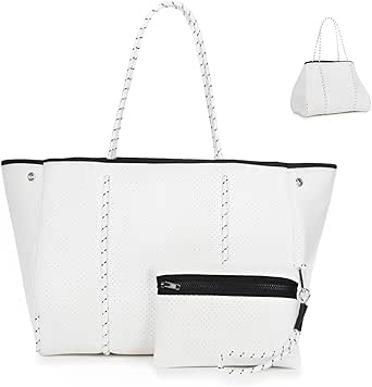 سكاي كير شنطة كبيرة توت للشاطئ للنساء، شنطة شاطئ متعددة الاغراض، خفيفة الوزن ومقاومة للماء لصالة الالعاب الرياضية والسفر والسباحة والشاطئ (ابيض)