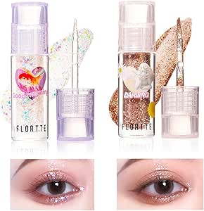 سيوسى ظلال عيون سائل جليتر من قطعتين من ستار دايموند ستريمر، ظلال عيون سائل لامع سهل الاستخدام، قلم تحديد عيون لامع يدوم طويلا (01+04)، زهري