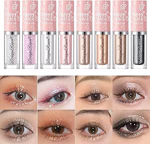 سيوسى مجموعة ظلال عيون سائلة لامعة سريعة الجفاف وتدوم طويلا وعالية الصبغة صمغ لامع خفيف الوزن لابتكار مكياج كريستالي 8 قطع متلألئ زهري