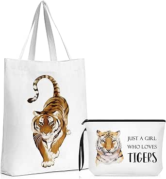سييرال قطعتان من هدايا محبي النمر تتضمن حقيبة كبيرة توت من القماش بتصميم نمر وحقيبة مكياج لمحبي الحيوانات، هدايا الكريسماس فقط لفتاة تحب النمور هدية للابنة والأخت والأصدقاء