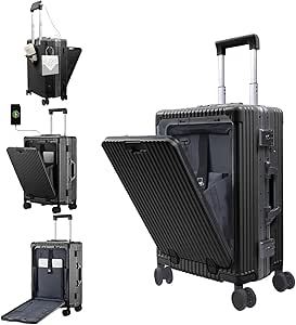 - 【USB + نوع سي】تأتي حقيبة السفر المحمولة مع منفذ USB ومنفذ من النوع C الموجود على الجزء الخارجي من الغلاف الصلب للحقيبة. يساعد منفذ USB على شحن هاتفك المحمول/3 سي، ولكن ستحتاج إلى إعداد مصدر طاقة محمول بنفسك، حيث لا تتضمن الحقيبة مصدرًا للطاقة. مقبض تلسكوبي متعدد المراحل مع آلية زر ضغط. مقابض حمل علوية وجانبية من الألومنيوم توفر سهولة الرفع والحمل.