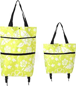 شنطة تسوق قابلة للطي بعجلتين قابلة لاعادة الاستخدام ومتعددة الوظائف للسفر للنساء