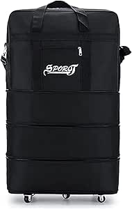 شنطة دفل اكسفورد كبيرة جدا قابلة للتوسيع مع عجلات مقاومة للماء وخفيفة الوزن وقابلة للطي بلون اسود دوارة، قماش