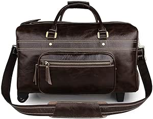 شنطة دفل بعجلات من جلد البقر للكبار من اكسورس، شنطة سفر بعجلات للرحلات الليلية وعطلة نهاية الاسبوع وصالة الالعاب الرياضية وصالة الالعاب الرياضية والليلية وصالة الالعاب الرياضية وعطلة نهاية الاسبوع