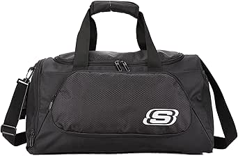 شنطة دفل رياضية بلون أسود لصالة الالعاب الرياضية من سكيتشرز – شنطة تمارين أنيقة وعملية بمساحات تخزين متعددة، مصنوعة من خامة متينة ومقابض مريحة، مثالية لمحبي تمارين اللياقة البدنية، البوليستر