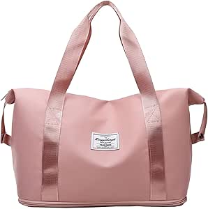 شنطة دفل قابلة للطي للسفر لعطلة نهاية الاسبوع مع فصل جاف ورطب، شنطة رياضية خفيفة الوزن لصالة الالعاب الرياضية وعطلة نهاية الاسبوع للنساء والرجال, زهري، نايلون