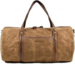 شنطة دفل قماشية للسفر من اكسورس، مصنوعة من الجلد بسعة كبيرة لصالة الالعاب الرياضية، شنطة يد رياضية لعطلة نهاية الاسبوع للرجال والرياضة الليلية وصالة الالعاب الرياضية وعطلة نهاية الاسبوع (اللون: كاكي)