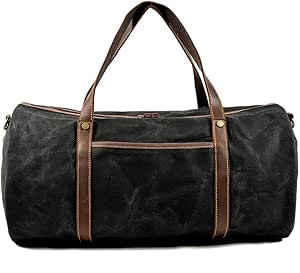شنطة دفل قماشية للسفر من اكسورس، مصنوعة من الجلد بسعة كبيرة لصالة الالعاب الرياضية، شنطة يد رياضية لعطلة نهاية الاسبوع للرجال والرياضة الليلية وصالة الالعاب الرياضية وعطلة نهاية الاسبوع (اللون: اسود)