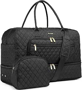 - 🍀حقيبة توت للسفر مع مساحة تخزين للأحذية – جيب سفلي مسطح منفصل لهذه الحقائب السوداء للنساء يمكنها حمل حذائك أو ملابسك المتسخة لسهولة فصلها عن الملابس النظيفة عند السفر. يبقيك منظمًا ويزيل المتاعب من التعبئة. إذا كنت أمًا مبتدئة، فإن الجزء السفلي مثالي أيضًا لتخزين الحفاضات والمناديل المبللة وحقائب الحفاضات. يمكن استخدامها أيضًا كحقيبة مستشفى أو حقيبة للأم أو حقيبة طبية.