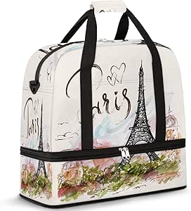 شنطة دفل للسفر، شنطة رياضية لصالة الالعاب الرياضية مع جيب للاحذية، شنطة عطلة نهاية الاسبوع، شنطة ليلية للنساء والرجال، برج ايفل، مقاس واحد