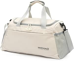 شنطة دفل للسفر صالة الالعاب الرياضية شنط عطلة نهاية الاسبوع مع جيب رطب وحجرة للاحذية مقصورة خفيفة الوزن للرياضة والسفر – ابيض البوليستر