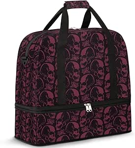 شنطة دفل للسفر قابلة للطي بتصميم جمجمة مخيفة للهالوين من سي اف بولار لحمل الامتعة والرياضة وصالة الالعاب الرياضية مع جيب للاحذية للنساء والرجال طوال الليل وعطلة نهاية الاسبوع واليوغا والتمارين