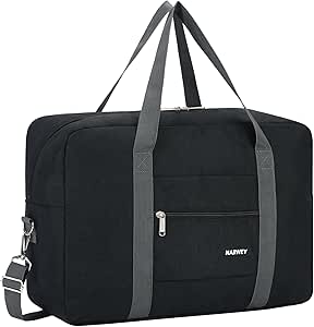 شنطة دفل للسفر قابلة للطي من فور سبيريت ايرلاينز لحمل الامتعة الرياضية وعطلة نهاية الاسبوع للنساء والفتيات، سلسلة سميكة 3112 اسود (مع حزام كتف)، من ناروي، البوليستر