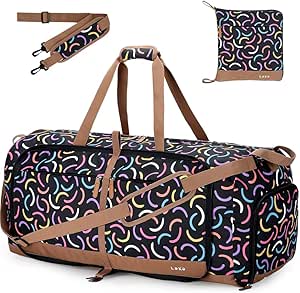 - حقيبة دفل ذات سعة كبيرة: 33 × 55 × 28.5 سم (الطول والعرض الارتفاع) بسعة 80 لتر والوزن: 0.85 كجم/1.87 رطل. تحتوي شنطة دافل هذه على مساحة تخزين رئيسية واسعة للضروريات اليومية. مساحة تخزين واحدة للأحذية والغسيل مع فتحتي تهوية تحتها لمنع الماء والرائحة.