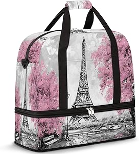 شنطة دفل للسفر وصالة الالعاب الرياضية مع مساحة تخزين للاحذية، شنطة عطلة نهاية الاسبوع، شنطة ليلية للنساء والرجال, برج ايفل باريس, قياس واحد، البوليستر، من تروبيكال لايف