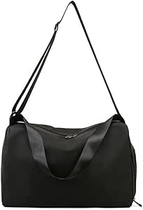 شنطة رياضية صغيرة للرجال والنساء من تزويق للياقة البدنية مع جيب للحذاء المبلل سفر خفيفة الوزن للطائرة واليوغا والبيلاتس والسباحة طوال الليل وعطلة نهاية الاسبوع نايلون أسود