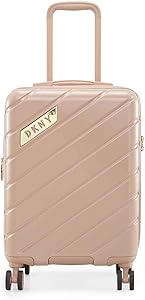 شنطة سفر بعجلات دوارة بجوانب صلبة من بياس انترناشونال مصنوعة مادة ABS خفيفة الوزن للغاية 4 عجلات مزدوجة مع قفل تي اس ايه كابوتشينو 20 انش DKNY أكريلونيتريل بوتادين ستايرين