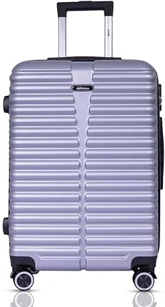 شنطة سفر ديستيني بتصميم مربعات من ام ان يو كيه | عربة بمقبض ناعم صلب مع قفل تي اس ايه | 4 عجلات مزدوجة 360 درجة | مقاس L – 28 انش، فضي