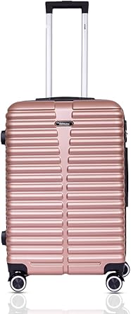 شنطة سفر ديستيني بتصميم مربعات من ام ان يو كيه | عربة بمقبض ناعم صلب مع قفل تي اس ايه | 4 عجلات مزدوجة 360 درجة | كابينة – 24 انش، ذهبي