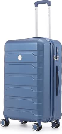 شنطة سفر صلبة من بلاستيك ايه بي اس بـ8 عجلات مقاس 24 انش، سعة 62 لتر قابلة للتوسيع حتى 74 لتر من برينس – لون ازرق كحلي، كفالة لمدة عامين