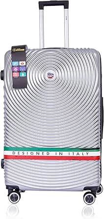 شنطة سفر كروز بتصميم مربعات من ام ان يو كيه | عربة بمقبض ناعم صلب مع منفذ USB وقفل عالمي | عجلات مزدوجة 360 درجة | L – 28 انش | فضي