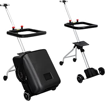 شنطة سفر للاطفال من ار سي كيو اي يو اول مجموعة امتعة صندوق العاب عصري للسفر والطلاب 2 في 1 وعربة اطفال اسود طفل أكريلونيتريل بوتادين ستايرين ABS