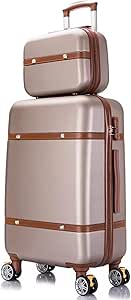 شنطة سفر للبنات من اس اس اكس ال، شنطة سفر صلبة بتصميم رترو مع عجلات، لون زهري، مقاس 22 انش (اللون: ابيض-ايه، المقاس: 20 انش (عبوة من قطعتين)