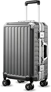 شنطة سفر محمولة باطار من الالومنيوم لوجيكس بدون سحاب البولي كربونات مع عجلات بهيكل صلب اسود 4 زوايا معدنية 20 انش حقيبة حمل