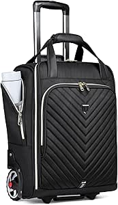 - حقيبة حمل معتمدة من شركات الطيران: يبلغ مقاس حقيبة السفر تحت المقعد 18 × 14 × 8 انش، مقاس يناسب معظم المقصورات العلوية لشركات الطيران والمقاعد السفلية. الخطوط الجوية الأمريكية؛ دلتا ايرلاين؛ الخطوط الجوية المتحدة؛ ساوث ويست؛ خطوط هاواي الجوية وألاسكا ايرلاين، إلخ. تتوافق الأمتعة تحت المقعد ذات العجلات مع جميع قيود حجم تسجيل الوصول المنشورة لجميع شركات الطيران الكبرى تقريبًا.