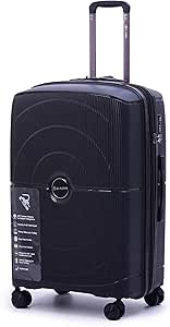 شنطة سفر من البولي بروبيلين عالية الجودة ريفليكشن بهيكل صلب خفيف الوزن ومتين وقابل للتوسيع مع عجلات دوارة مزدوجة وقفل تي اس ايه اسود 28 انش