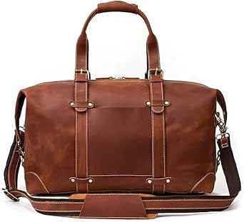 شنطة سفر من الجلد الطبيعي للرجال مصنوعة من الجلد الطبيعي من القماش الخشن بتصميم فينتاج كريزي هورس، شنطة يد كبيرة لعطلة نهاية الاسبوع