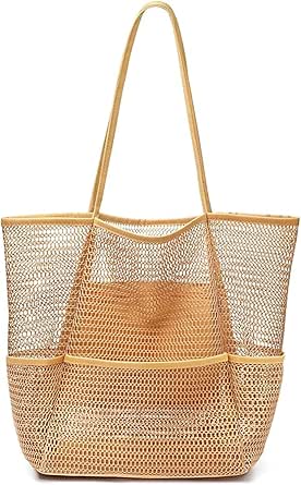 حقيبة الشاطئ الشبكية هذه كبيرة بما يكفي لحمل 4-6 مناشف شاطئ وزجاجة مياه كبيرة وألعاب الأطفال وواقي الشمس والأحذية والنظارات الشمسية والزعانف وفرشاة الشعر والأحذية المائية ومعدات السباحة والملابس الإضافية والوجبات الخفيفة والمحفظة والمفاتيح والهاتف والمجلات والكتب والايبود ومجموعات الغطس؛ ضع الأشياء في المكان الذي تريده واقف في وضع مستقيم.
