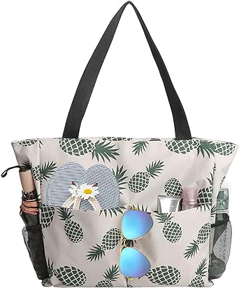 شنطة شاطئ كبيرة جدا بسحاب للنساء من تاهافيس، شنطة توت للشاطئ مقاومة للماء مع جيوب متعددة الوظائف، شنط بقالة قابلة لاعادة الاستخدام للنساء، شنط توت للتسوق