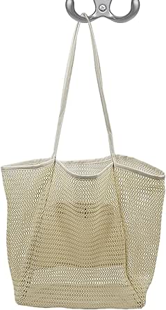 شنطة شبكية من اتش سي اتش كيه ام ام اي لالعاب الشاطئ، شنطة شاطئ شبكية كبيرة، شنطة كتف صيفية خفيفة الوزن مقاومة للرمل، شنطة حمل كبيرة لحمام السباحة والسفر والعطلات (اللون: بيج، المقاس: 1)