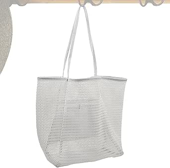 شنطة شبكية من اتش سي اتش كيه ام ام اي لالعاب الشاطئ، شنطة شاطئ شبكية كبيرة، شنطة كتف صيفية خفيفة الوزن مقاومة للرمل، شنطة حمل كبيرة لحمام السباحة والسفر والعطلات (اللون: ابيض، المقاس: 1)