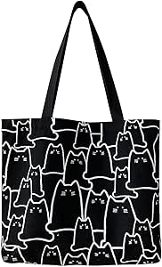 شنطة كبيرة توت قماشية لطيفة للنساء مع سحاب، شنطة تسوق قطنية قابلة لاعادة الاستخدام مع جيب، شنطة تسوق هدية لمحبي القطط