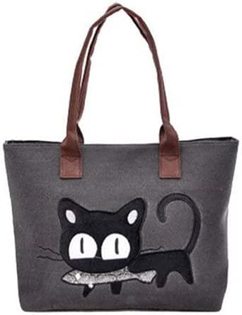 شنطة كتف من القماش الطبيعي، شنطة توت توت بطبعة قطط، شنطة شاطئ قابلة لاعادة الاستخدام مع سحاب للمشترين، لون اسود، متينة ومفيدة