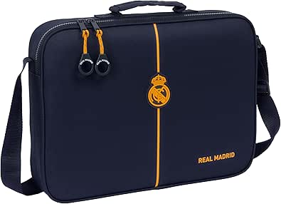 شنطة مدرسية للأطفال من الجنسين بتصميم فريق ريال مدريد الثاني 24/25، حقيبة عمل وحقيبة كتف مريحة ومتعددة الاستخدامات ومرنة من سافتا، 38 × 6 × 28 سم، لون أزرق كحلي، M385 612457385