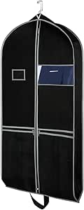 • طول 109 سم مع 7.5 سم، حقيبة ملابس محمولة للسفر تحتوي بسهولة على فستانين وبدلة وقميص – مع مساحة احتياطية. شنطة البدلات الرجالية مناسبة لحجم مناسب للبدلات والعباءات والفساتين والقمصان والمعاطف الشتوية والجاكيتات والبلايز والسراويل وما إلى ذلك.