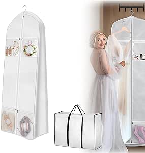 - 【حماية متينة】- مصنوعة من قماش اوكسفورد المقاوم للتمزق والماء، تحمي هذه الحقيبة فستانك الثمين من الغبار والأوساخ. تضمن المادة السميكة حرية التصرف وتضيف إلى المفاجأة في يوم زفافك.