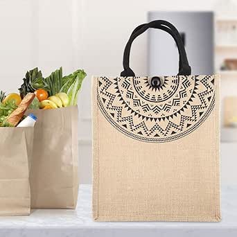 شنطة يد توت من الجوت قابلة لاعادة الاستخدام من واي كيو دبليو اتش ال، شنطة من الجوت، شاطئ التخييم لنزهة التسوق (مقاس M)